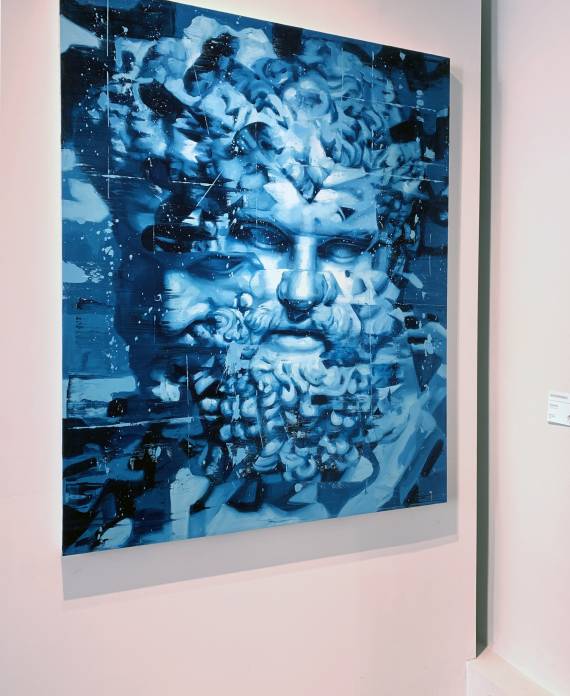 “BLUESERIES” rappresenta un’ode alla bellezza e alla complessità dell’arte, sia antica che contemporanea, alla potenza dell’immaginazione e alla capacità dell’arte di ispirare e trasformare. L’artista intreccia abilmente elementi personali di figurazione contemporanea all’astrattismo e, concettualmente, anche al cubismo. Innanzitutto, mette in atto una profonda riflessione sulla continuità dell’arte attraverso i secoli e sull’incessante ricerca di nuove forme di espressione.