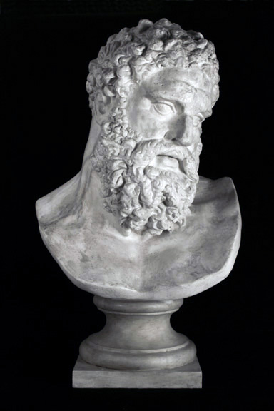 Il busto da cui l’artista ha preso ispirazione è quello dell’Ettore Farnese, tratto dalla statua colossale conservata presso il Museo Archeologico Nazionale di Napoli. La celebre scultura in marmo, di età severiana, è opera di Glycon e copia di un originale in bronzo di Lisippo del IV secolo a.C. Fu rinvenuta a Roma presso le Terme di Caracalla intorno al 1546 e pochi anni dopo entrò nella Collezione Farnese da cui ne prende il nome.